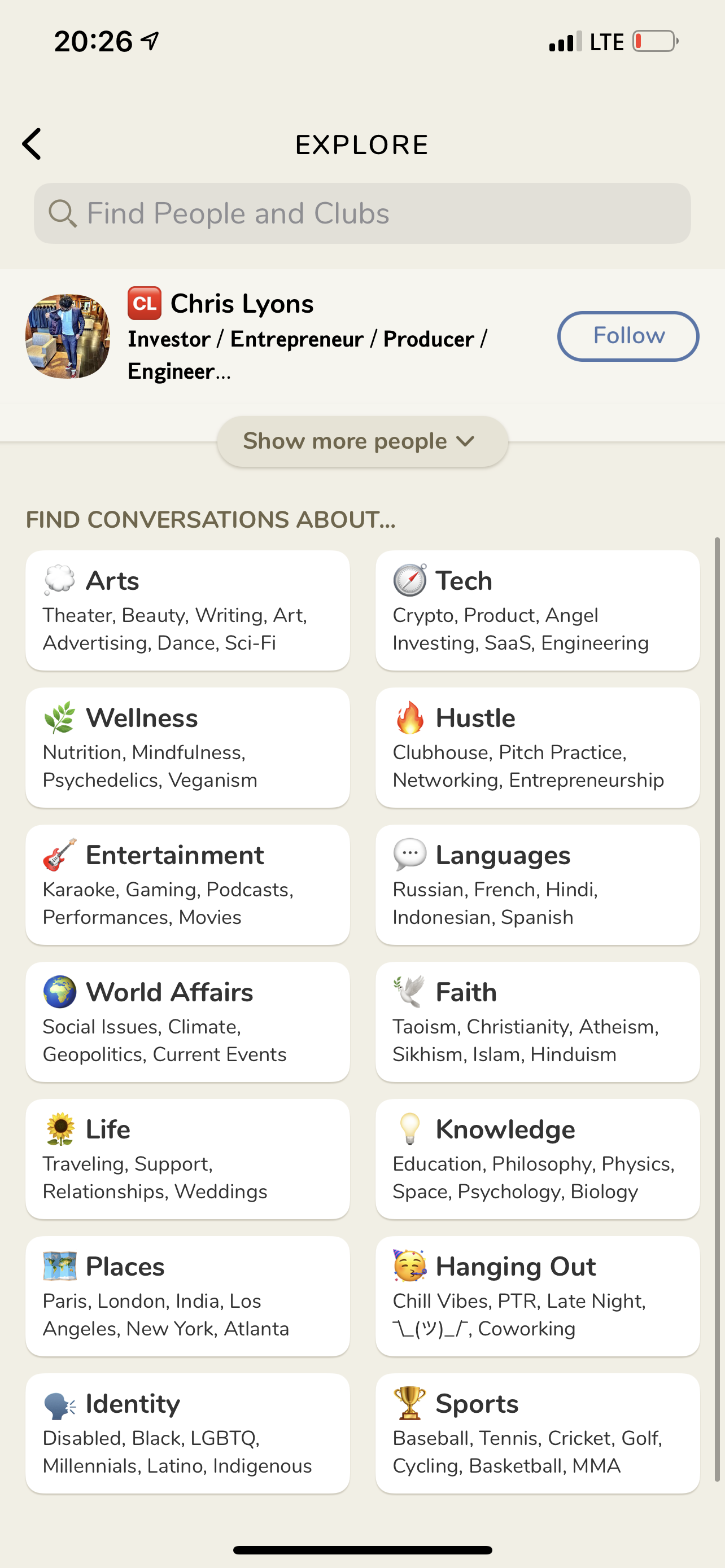 투자나 여행 책읽기 등등 다양한 관심사들로 구성되어있고 각분야의 인플루언서들이 방을 만들어서 말을 하는구조고 거기서 방청객들이 발언권을 얻어서 참여 하는 형식인것같습니다.