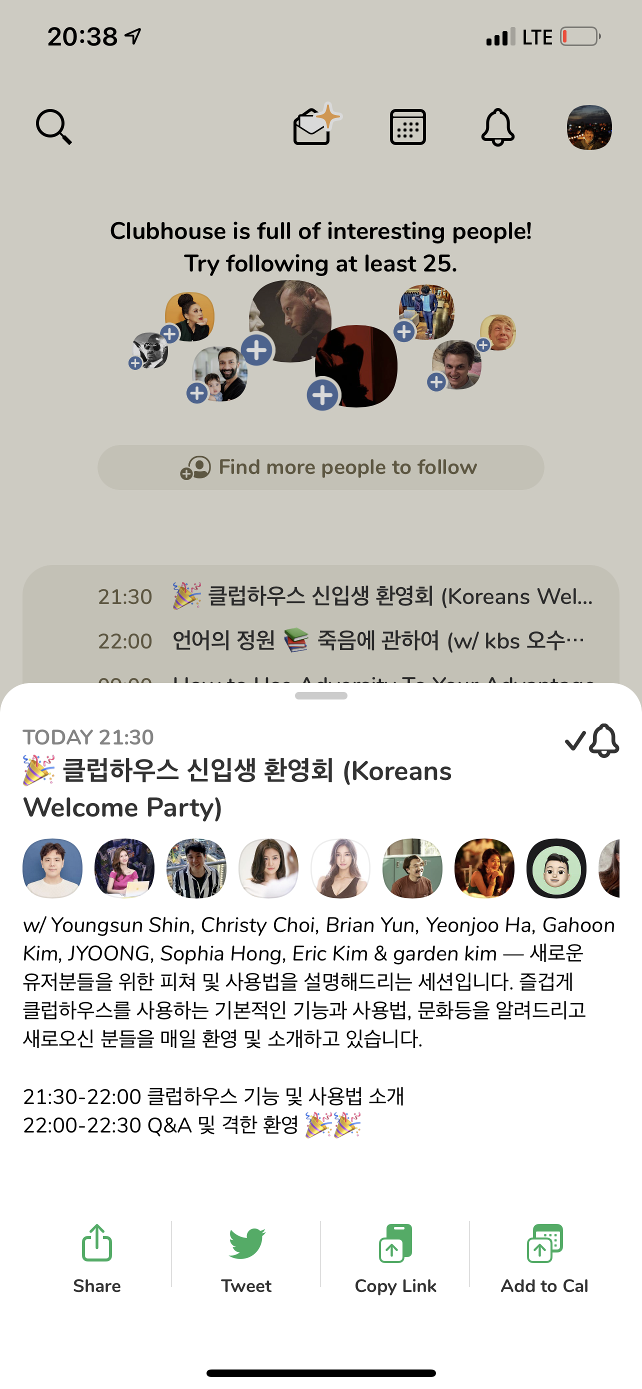 말로만 들어보던 클럽하우스를 사용해 보게 되었습니다.